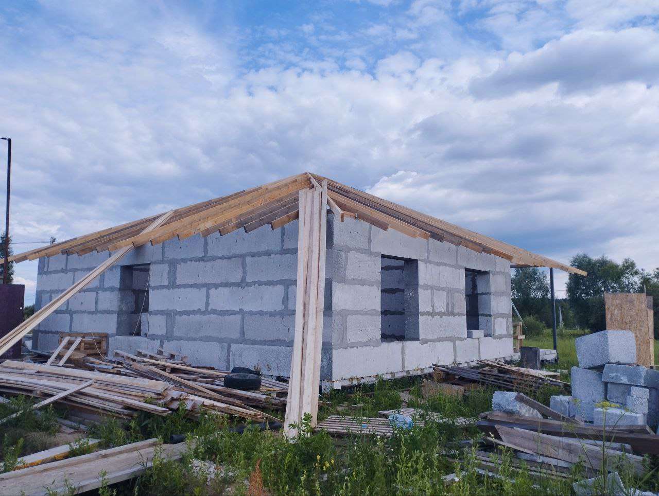 4 спальни, большая кухня гостиная, 2 сан узла, котельная, прихожая и терраса и все это на площади 12 м*13 м.