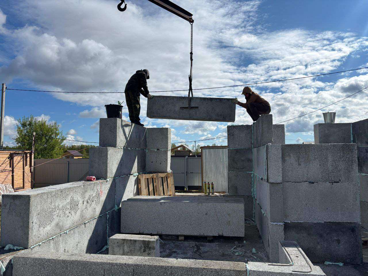 Возведение одноэтажного дома из крупноформатных полистиролбетонных блоков – это современное и эффективное решение, сочетающее в себе скорость строительства, высокие теплоизоляционные характеристики и экономичность. Этот метод позволяет существенно сократить сроки реализации проекта и снизить затраты на отопление в будущем. Все ряды блоков укладываются с перевязкой швов, обеспечивающей дополнительную прочность конструкции. Для армирования кладки через каждый ряд блоков укладываем два ряда арматуры диаметром 6 мм. Особое внимание уделяется созданию перемычек над оконными и дверными проемами. Используются готовые полистиролбетонные перемычки с армировкой тригонами. Строительство одноэтажного дома из крупноформатных полистиролбетонных блоков – это оптимальное решение для тех, кто ценит скорость, энергоэффективность и экономичность. Правильный выбор материалов и соблюдение технологии строительства гарантируют долговечность и комфорт проживания в новом доме.