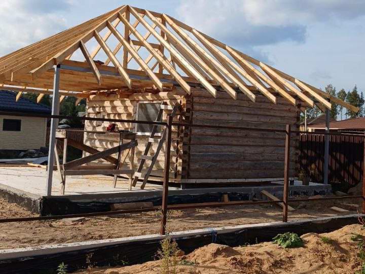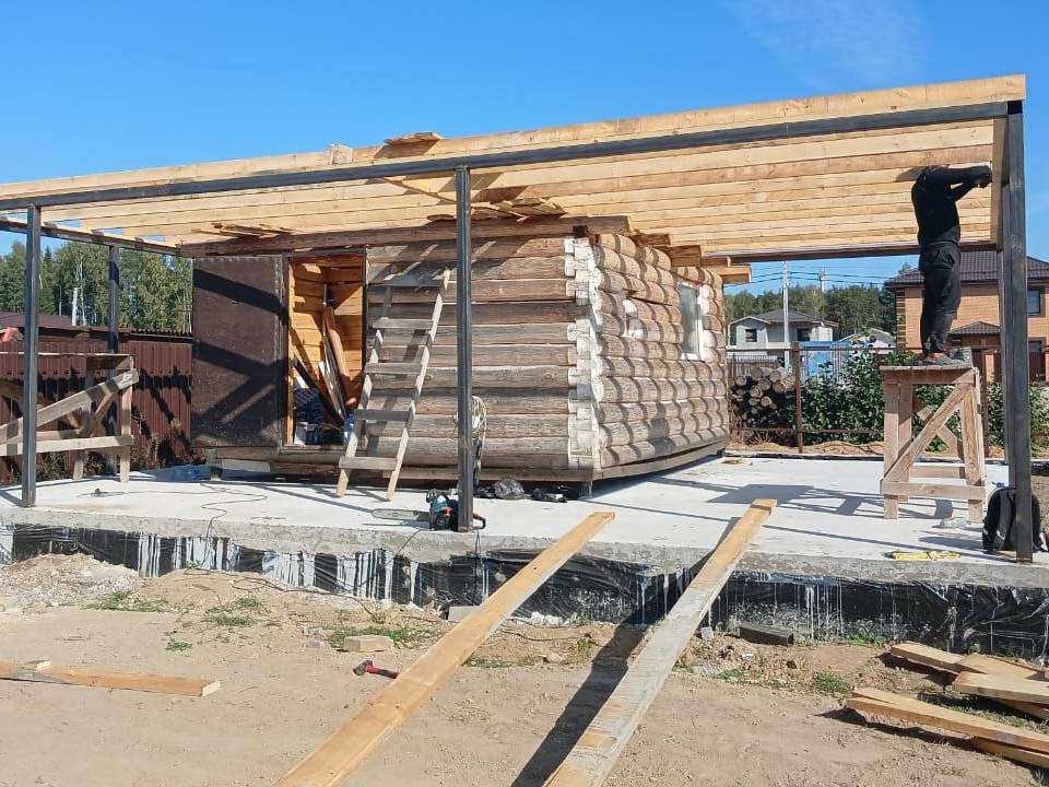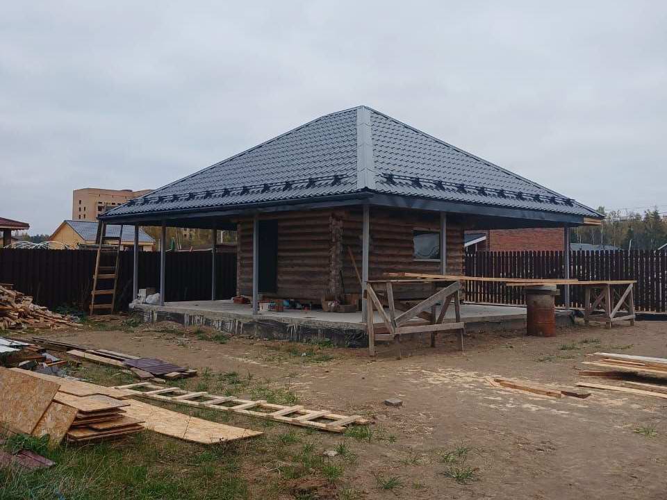 Смонтировали крышу над баней и зоной отдыха в мкр. Заря. Переходим к отделке бани внутри.