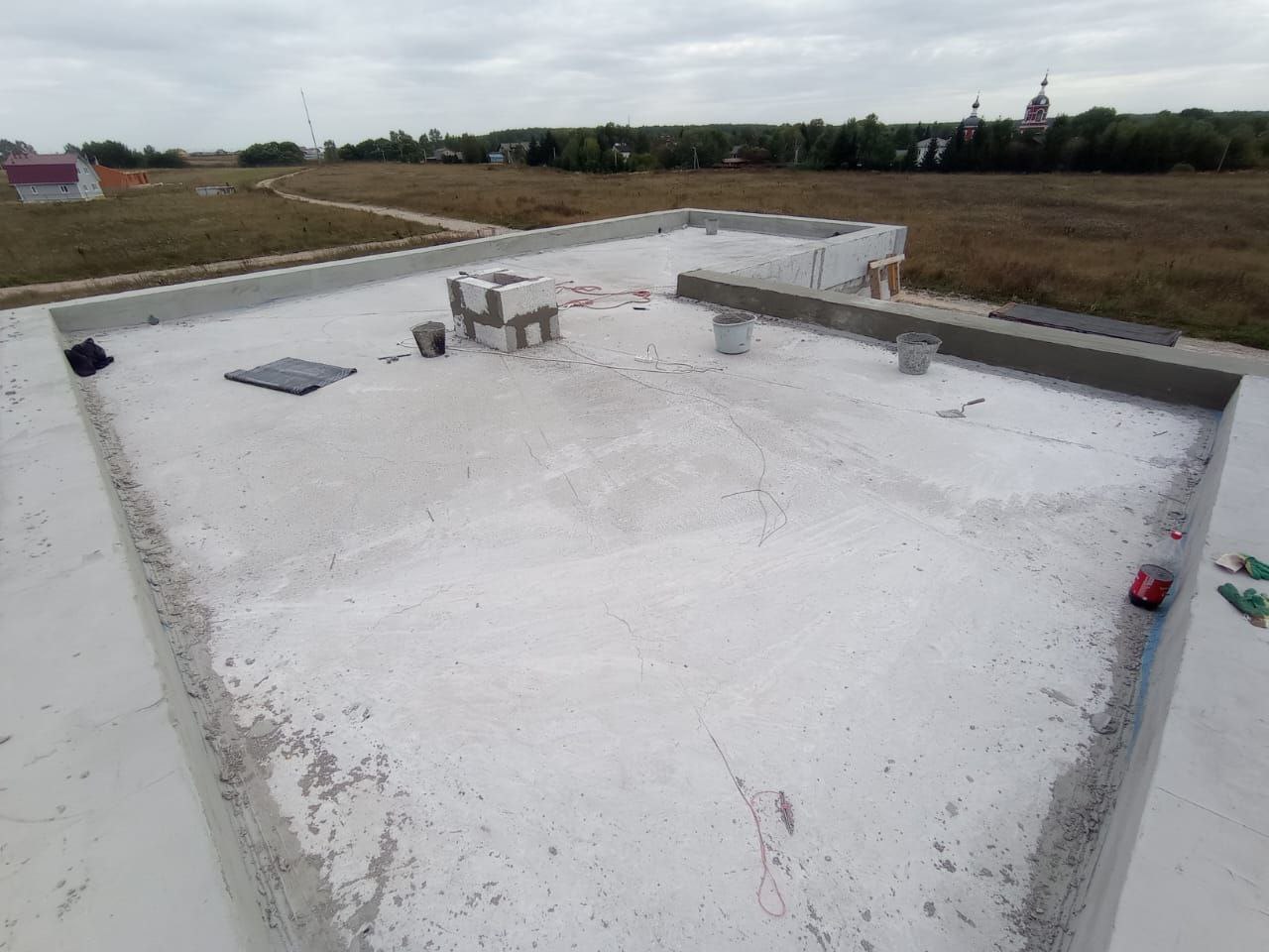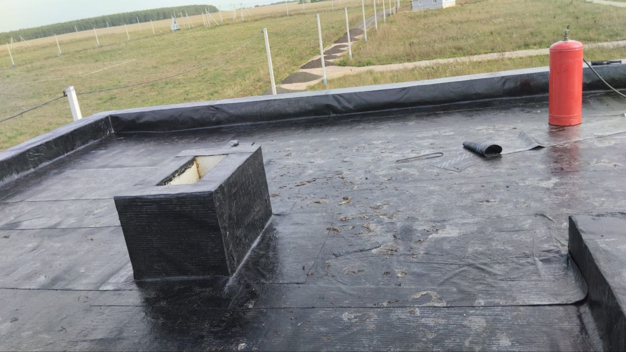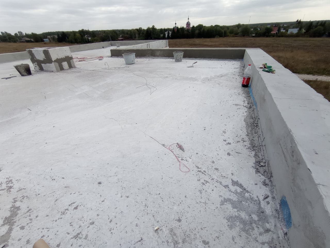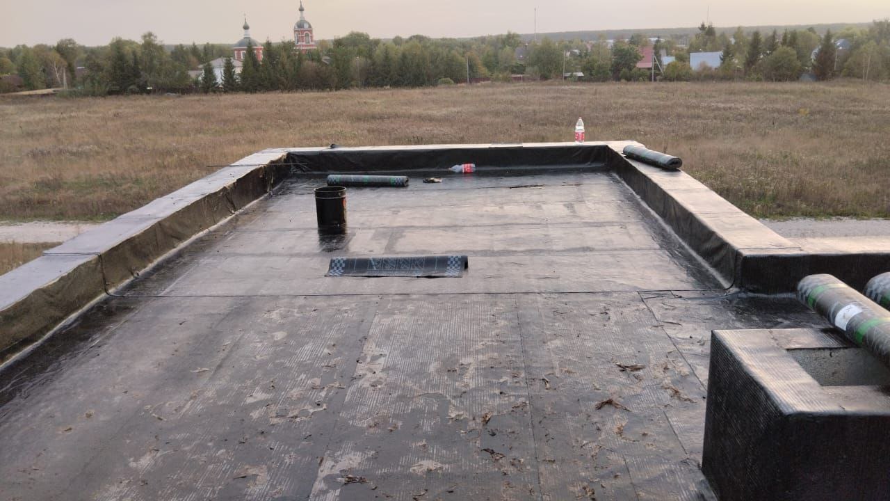 После утепления и стяжки с разуклонкой с установкой воронок остались только финишные покрытия.